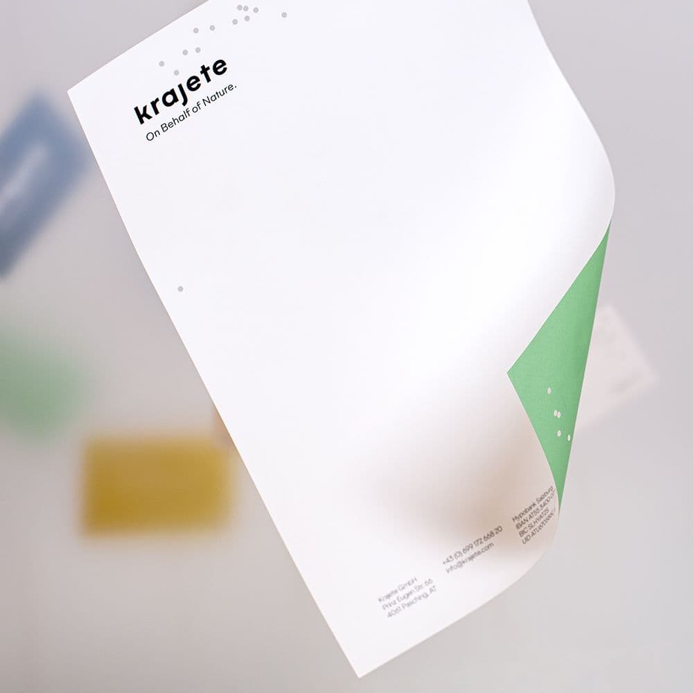 This innovation inspired the DMB. Brandshop team to create a new corporate design based on the theme of air. The repositioning, "On Behalf of Nature," ties Krajete closely to nature and correlates with the brand's fundamental idea: inspiration and solutions come from nature.