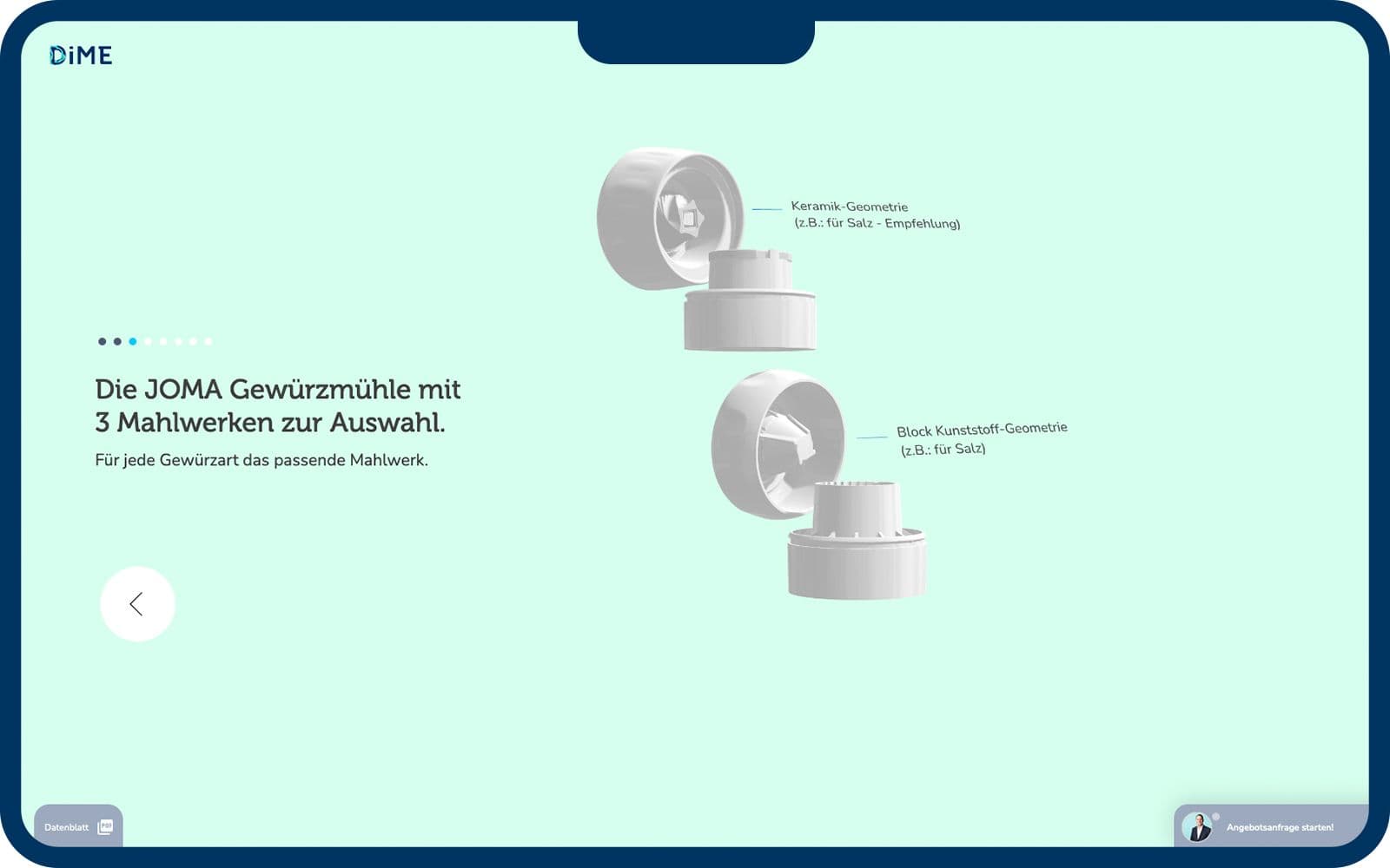 The DMB. Brandshop team found it: DiME, the Digital Meeting Experience from JOMA. A unique, fully integrated service platform that enables all trade fair services to be experienced digitally and provides deep insights into the company and its products. And much more: because DiME became not only a replacement for international events, but rather a personalized always-on experience for customers and prospects.