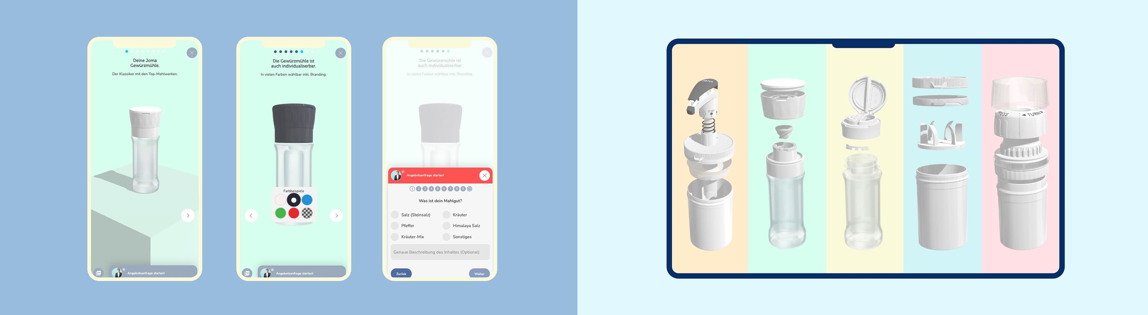 Users can interact with the products in real time, configure them according to their own needs and submit individual requests to JOMA.