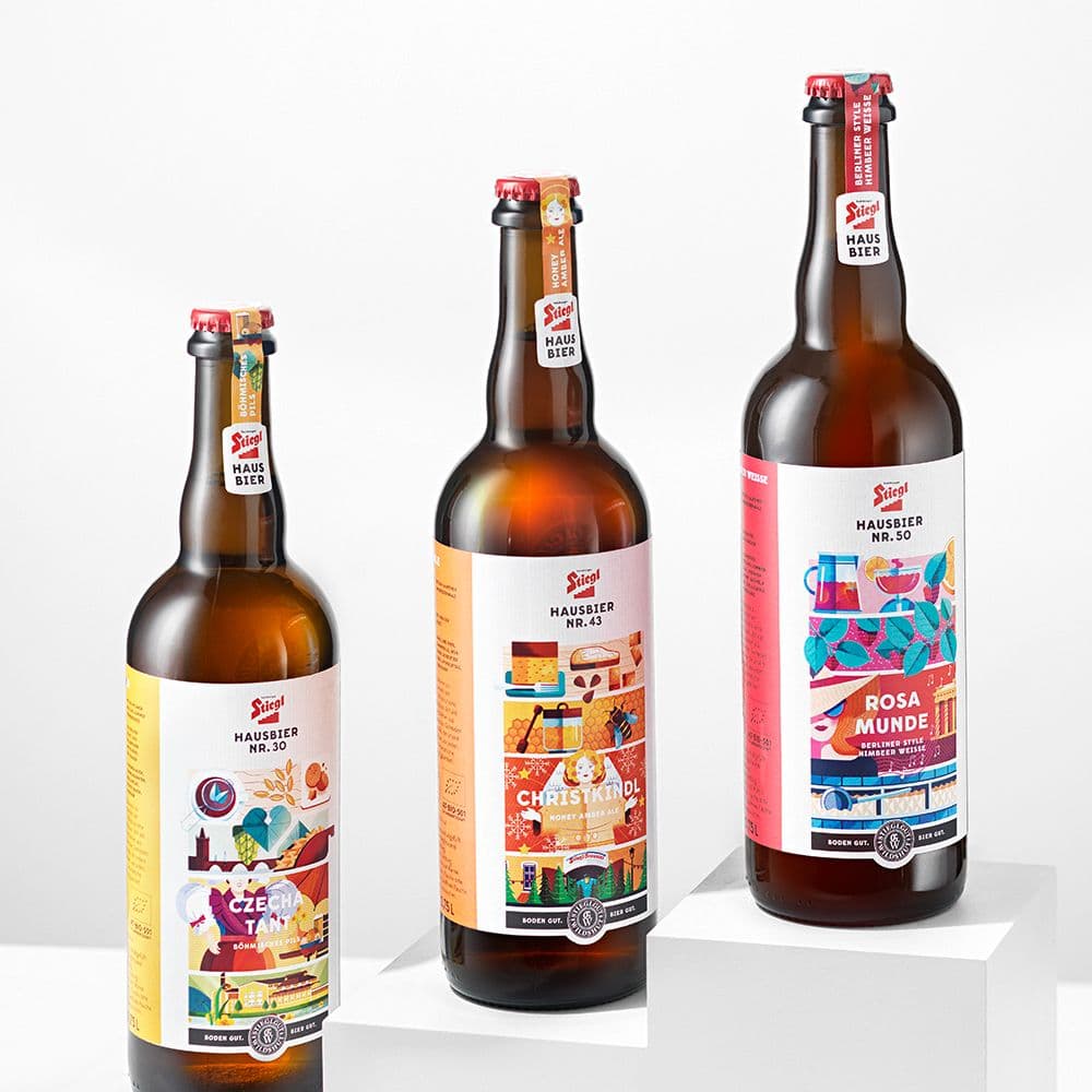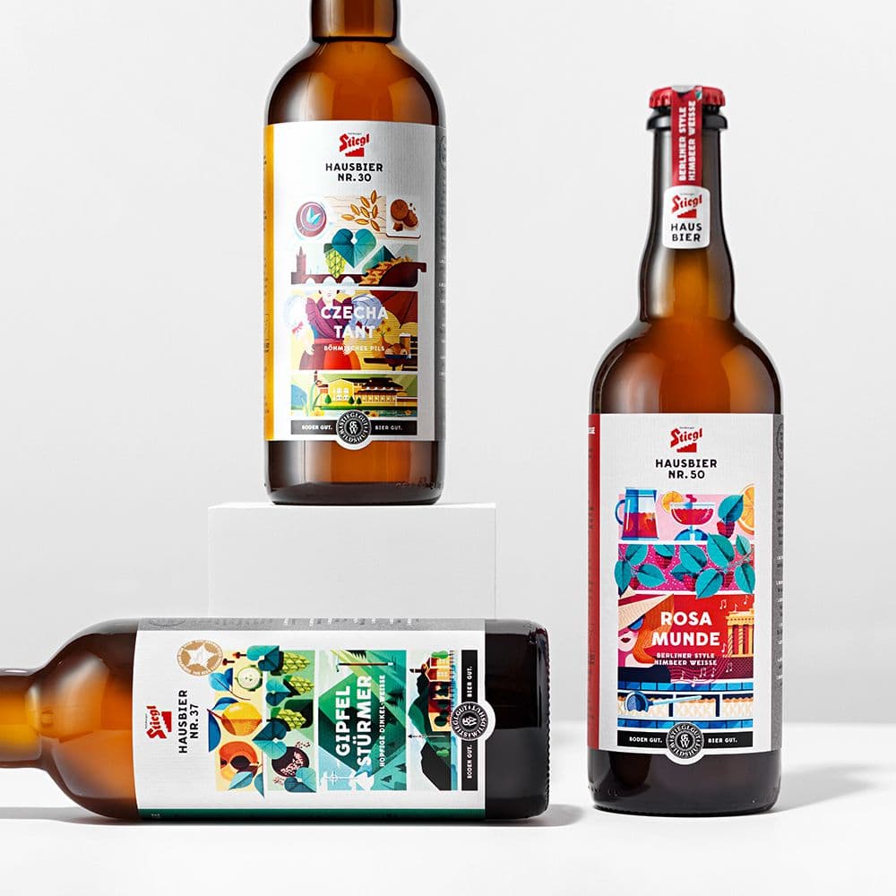 The house beers bridge the gap between the classic Stiegl brand, which has always stood for the best taste and tested quality, and the Stieglgut Wildshut, a creative ideas laboratory that always produces special creations outside the mainstream. The entire range of house beers was to be redesigned to reflect this unique connection.