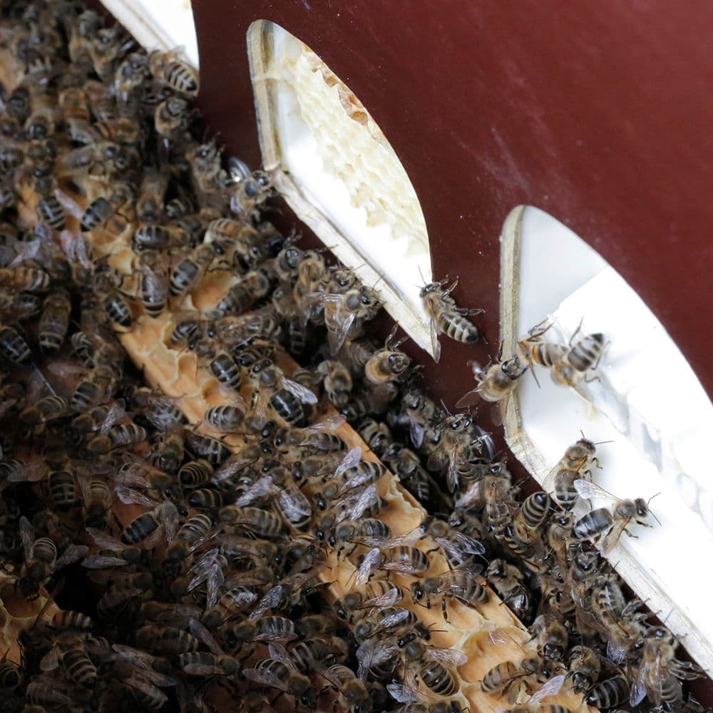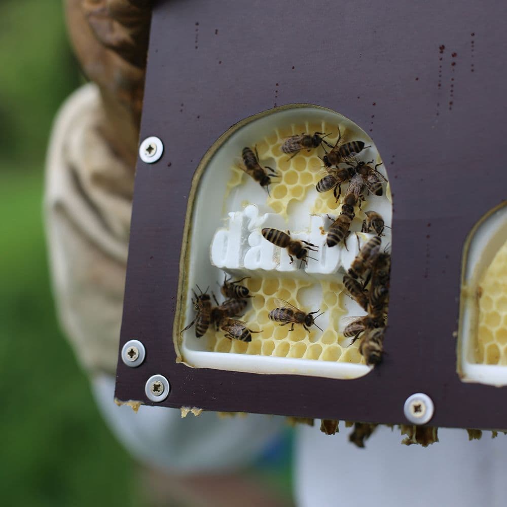 Sie setzten die Honiggläser direkt in die Bienenstöcke – von da an übernahmen die Bienen die Arbeit. Jeder Stock produzierte seine eigenen organischen Etiketten. So verwandelten sich einfache Gläser in einzigartig designte Gebinde. Sie wurden an ausgewählte Gastronomen, Hoteliers und LEH-Einkäufer versendet, um die Einzigartigkeit des Imkerhonigs zu promoten.